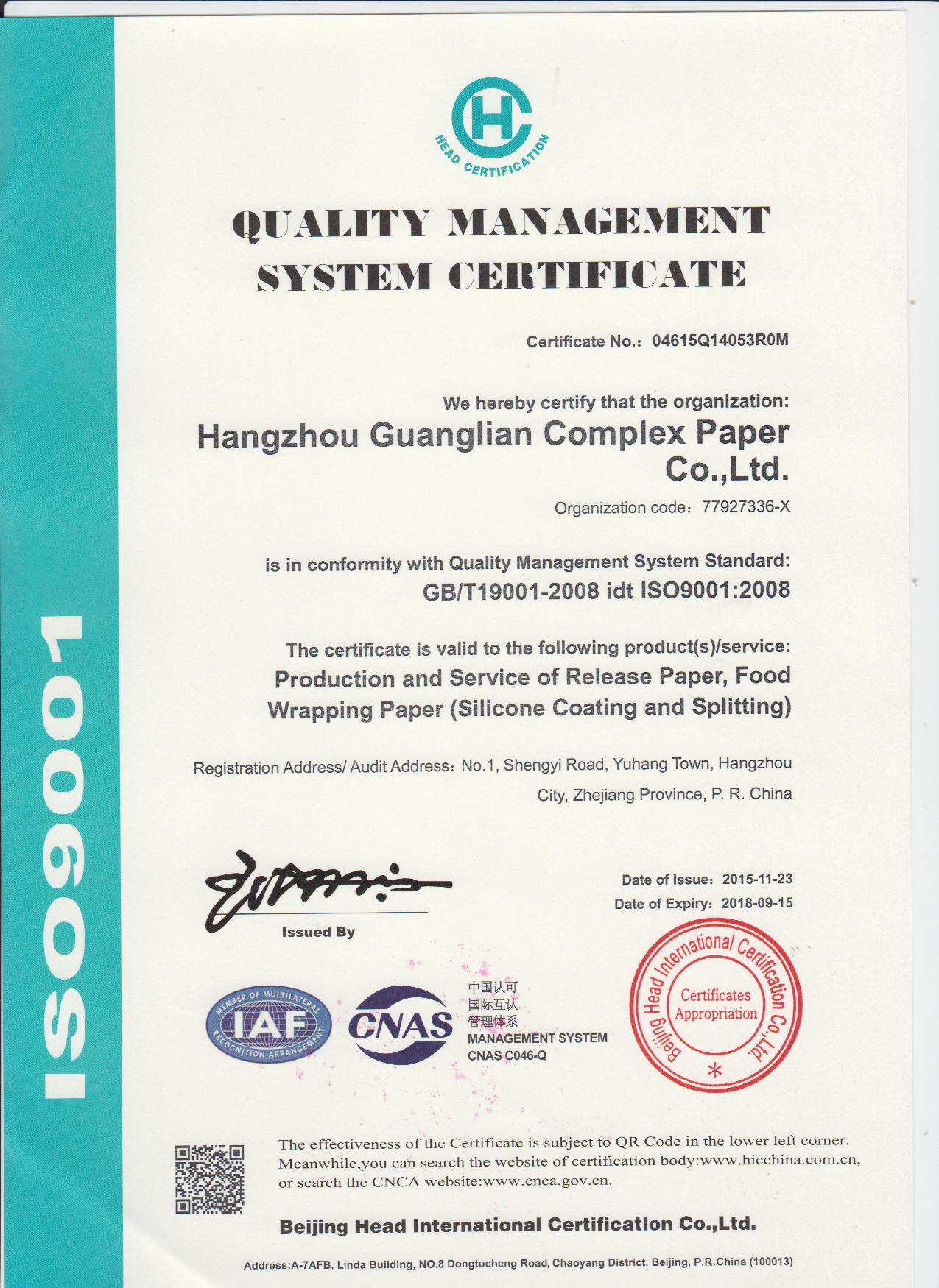Hangzhou Guanglian Complex Paper Co,. Ltd